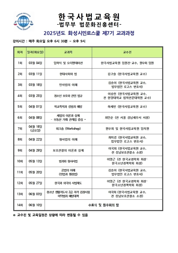 2025년도 화성시민로스쿨 제7기 교과과정